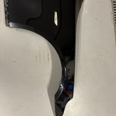 Den vänstra spegeln har gått sönder i fästena men speglarna är hela