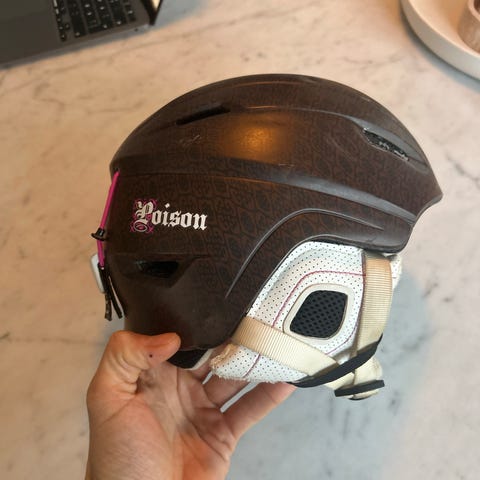 Anon skidhjälm med goggles i svart färg. Hjälmen har vaddering på insidan för komfort och justerbara remmar för säker passform. Goggles har spegelglas med orange ton och justerbart band med mönster och text. Produkten är anpassad för skidåkning och vintersport.