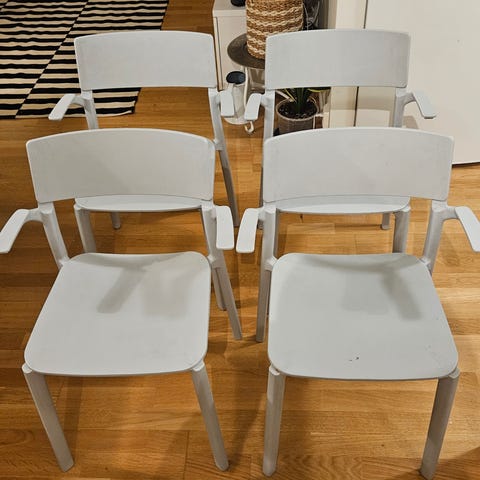 Säljer 6 stycken vita matstolar i modernt utförande.