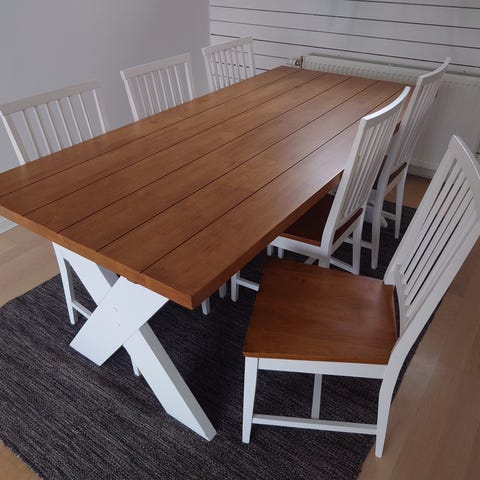 Bordet är i gott skick, stolarna är bekväma och klädseln fortfarande fräsch (inga djur i hemmet, rökfritt).