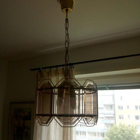 Fin taklampa i glasmosaik från Turkiet i lila nyanser. Inkl hängkedja i mässing.