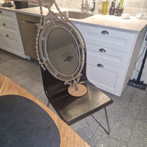 Spegel, gustaviansk stil, oval, bronserad.