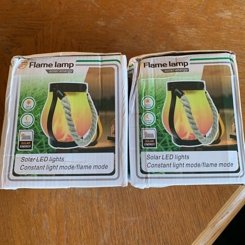 2 st Flame lamp solcellslampa med LED-belysning för utomhusbruk. Lampan är designad för att hängas och drivs av solenergi. Utrustad med två hastighetsinställningar och ett handtag av rep för enkel upphängning. Aldrig använda.