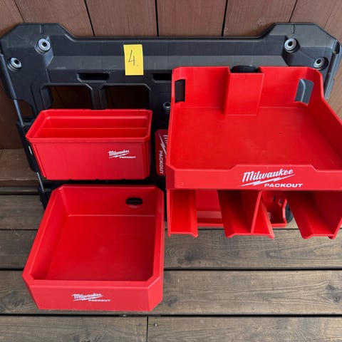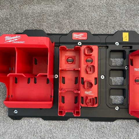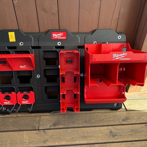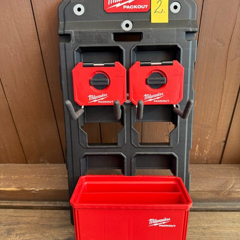 Milwaukee Monteringsplatta med verktygsförvaring, batteriförvaring, krokar.