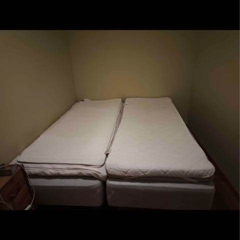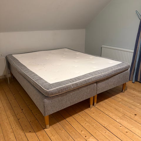 Säljer en Skotterud 160cm bred resårsäng med hårdhet : medel/fast som utgått ur Ikeas sortiment. Denna är som en stor säng där man slipper skarv i mitten. Extra stödben under.