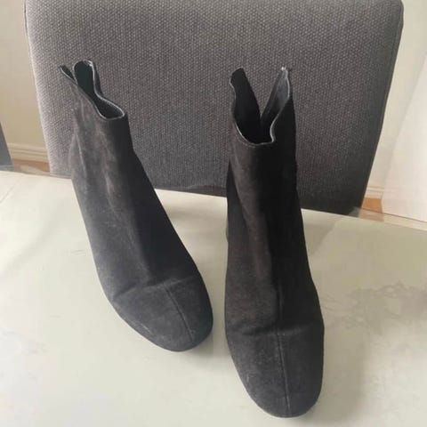 Svarta knähöga mockastövlar med nervikt skaft upptill. Strl 40. Klackar o sulor i fint skick. Skön att gå i. Skönt foder inuti. Klackhöjd ca 6 cm.