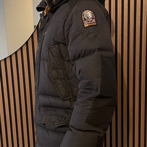 Parajumpers vinterjacka i storlek XL med dunfyllning. Jackan är grön och designad för att ge värme och skydd vid kalla förhållanden.