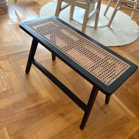 Skolbänk med tillhörande stol. Använt skick med lite fläckar och skavd färg på ovansidan. Perfekt för liten konstnär att starta nya kreativa projekt på:-)