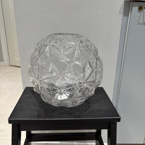 Stor och frost glasdekoration med geometriskt mönster vas Transparent och tillverkad i glas. Passar som prydnad i olika miljöer.