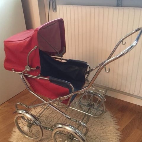 Svanvagn med dekorativa detaljer och plats för docka