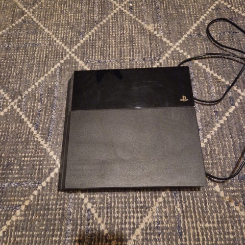 Sony Playstation 4 spelkonsol inklusive tre handkontroller i svart och rött. En av kontrollerna fungerar inte men går nog att få igång om man är händig med sånt, de andra funkar men har lite glapp i laddningsporten.
