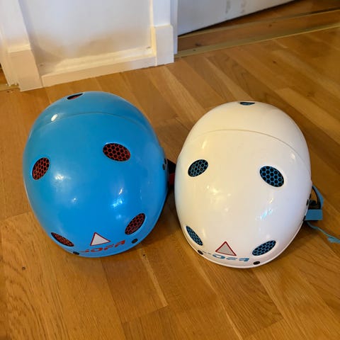Hjälmen är sparsamt använd(nyinköpt av oss) Jofa-hjälm som passar ett mindre barn (t.ex. ihop med skridskorna 28/30). Lämplig till pulkaåkning, skridskor eller slalom