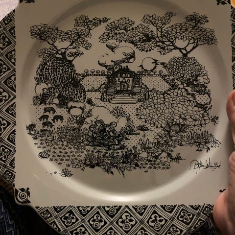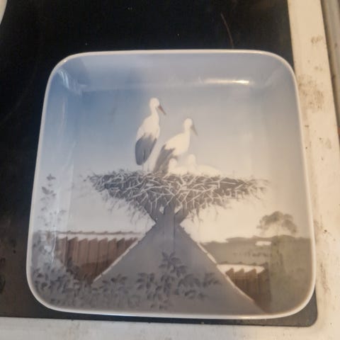 Bing & Grøndahl The Seasons dekorationsfat med motiv i svartvitt. Fatet är av porslin och visar en detaljerad illustration, lämplig för samling eller som prydnadsföremål.