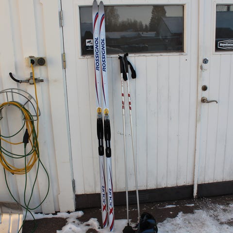 Skidorna är i fint skick även pjäxorna, men finns lite smuts och någon repa på pjäxorna (syns på bilden). Pjäxorna är i storlek 39 1/3, grå färg.