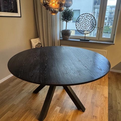 Bord från Hjort Knutsen med ekskiva och svarta ben. Fasad naturkant med otroligt snygg finish. 19995kr nypris