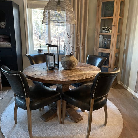 Hjort Knudsen bord, Mimi Matstol Brun Läder Artwood