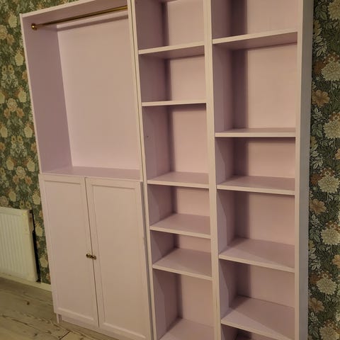 En hylla 240 hög med överdel som är avtagbar då 202 hög, 40 bred och 28 djup 150:-.