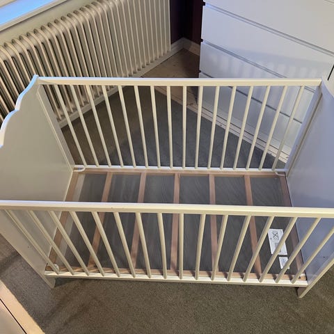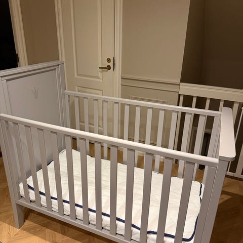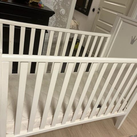 Brun barnsäng Troll, madrass IKEA sultan blunda, täcke, kudde