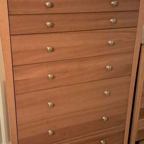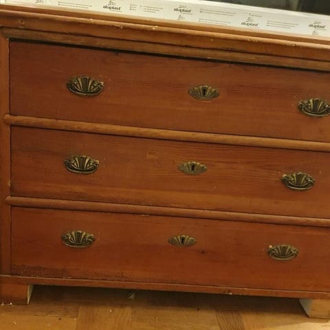 En fin, klassisk byrå i trä med tre lådor. Perfekt för förvaring i sovrummet, hallen eller var som helst där du behöver extra utrymme. Den har en vacker träfärg och charmiga detaljer som gör den till ett blickfång i alla rum. Är i fint skick för sin ålder.