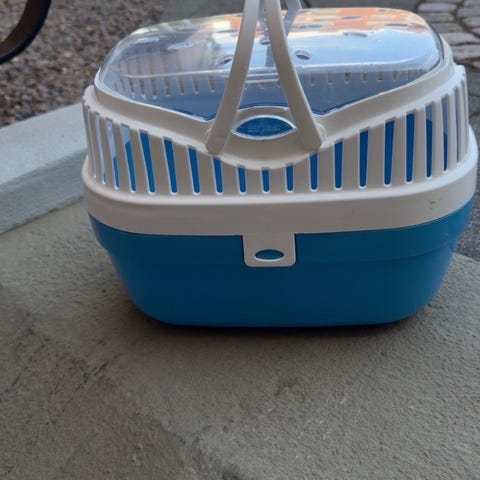 Transportbur för djur med metallgrind och matkoppar