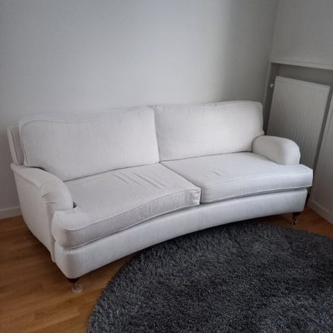 Soffan är använd men i gott skick, med normalt slitage. Stabil stomme och skön att sitta i. Avtagbar klädsel som kan tvättas. Perfekt för dig som behöver en extra soffa till hemmet, kontoret eller sommarstugan.