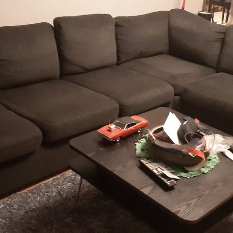 Soffan går att dela på 3 ställen, väldigt lätt att bära men behövs bärhjälp då den är otymplig att bära ensam.