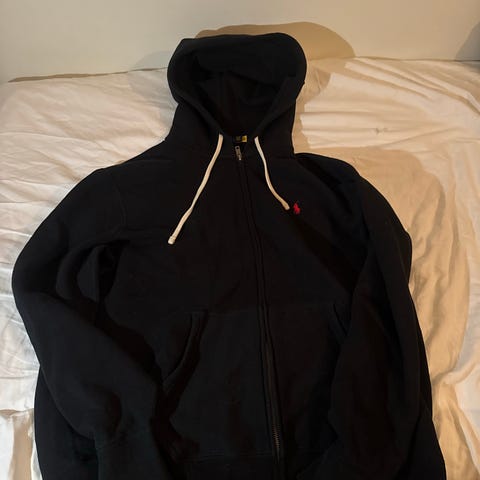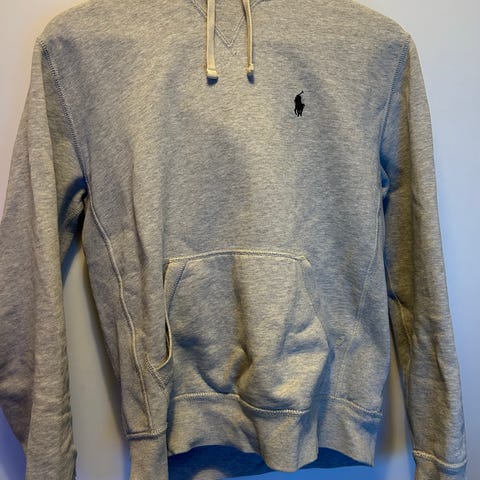 Ralph Lauren hoodie i storlek M. Grå hoodie med tryckdetaljer. Tröjan har huva och tryckdetaljer på framsida och ärmar, samt en framficka. Limiterad kollektion.