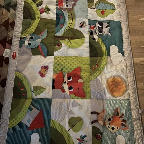 Little Dutch aktivitetsmatta barnleksak i grön färg. Tillverkad för spädbarn och små barn med mjukt material och flera hängande leksaker för stimulans och lek.