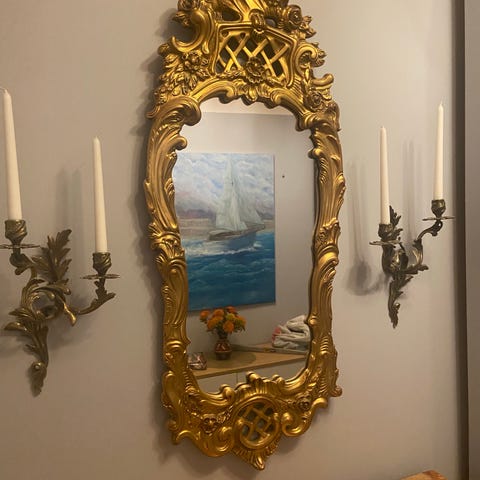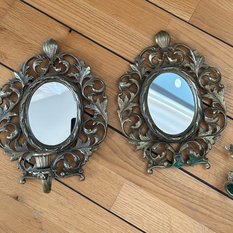Två st Väggspegel ljuslampett ,ljushållare i mässing.