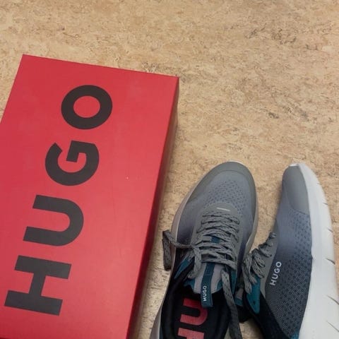 Hugo Boss finskor i storlek 43 med svart färg. Skorna är tillverkade i läder och har snörning framtill. Passar för formella tillfällen och kontorsbruk.