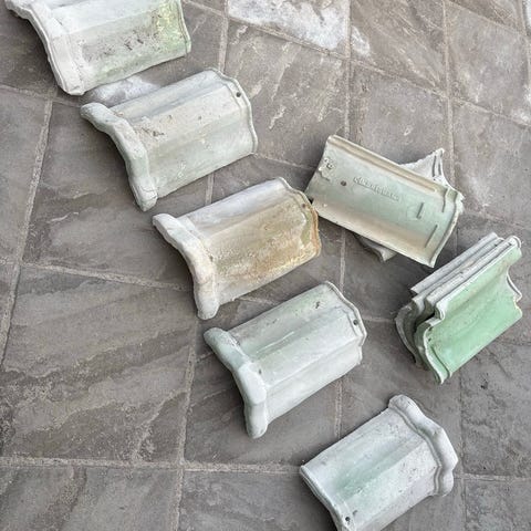 Takpannor i lertegel med rödbrun färg. Används för takbeläggning och skydd av byggnader. Materialet är hållbart och lämpligt för utomhusbruk.