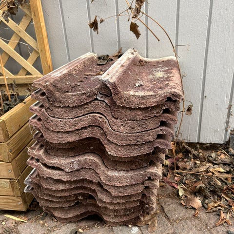 Uppskattningsvis räcker det till ett mindre garage, större lekstuga.