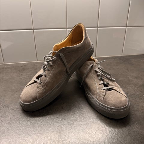 Använda cirka 5 gånger. Hade inte orken till att tvätta dem, men efter en liten rengöring så är dom som nya. Box, skosnören medföljer. Ny pris på skorna ligger på 2250kr.