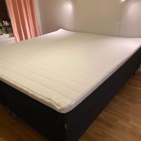 På grund av allvarlig sjukdom behöver min svärfar nu en sjukhussäng hans sista tid i livet. Därför behöver hans fina sängar säljes snarast möjligt. Sängarna är från EM home i modellen Solitary. Mycket bra/ny skick, endast ett tejp märke på bäddmadrassen. Sängen har haft fullt skydd och köptes i maj 2024. Inklusive sängben.