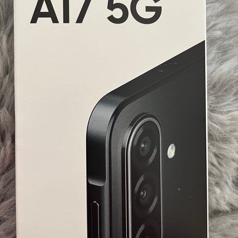 Samsung Galaxy A17 5G smartphone med 128 GB lagringsutrymme. En mobiltelefon med 5G-anslutning, 75 mm tunn design, 50 MP kamera och 6,5 tums skärm. NY & Oanvänd