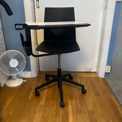 Går att fälla ihop! Så den tar minimal plats och går under skrivbordet.