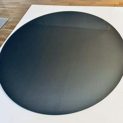 Är 80 cm i diameter, och med grått glas.