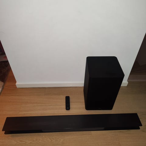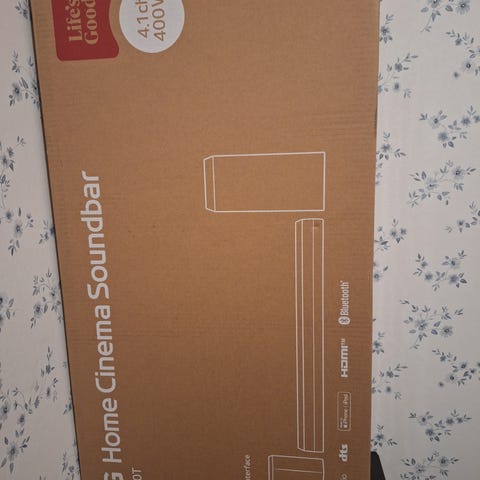 LG Soundbar ljudenhet. En ljudprodukt från LG för att förbättra ljudupplevelsen vid användning med TV eller annan mediautrustning.