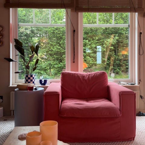 Otroligt fin soffa som förändrar hela rummet med sin härliga klädsel i prickig linne!