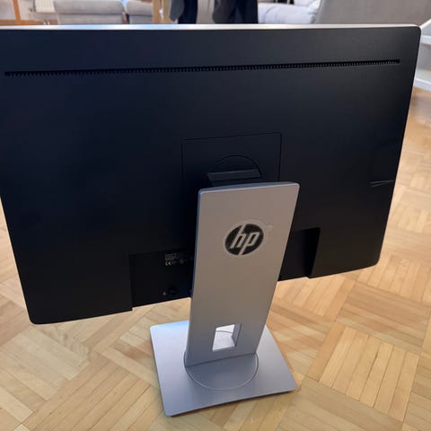 HP 24-tums bildskärm med anslutningar för VGA, DVI och DisplayPort. Skärmen har två USB-portar och är avsedd för allmänt datoranvändande. Ingår också ett fullt rörlig armstativ som är väldigt stabilt.