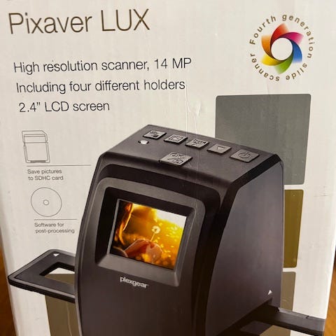 Plexgear Pixaver Lux Fotofilmskanner med 2.4- tumsskanner för digitalisering av diabilder och negativ. Bilderna sparas på SD-kort (medföljer 32GB). Kopplas till dator med USB (medföljer) och kan kopplas direkt till TV. Kan hantera ca 1513 bildfiler på minneskortet. Upplösning 14 mp, Jpeg format. Kompatibel med Windows och Mac OS. Lev. med hållare för negativ 35, 110 och 126 samt diaramar. Strömadapter samt svensk manual, installations CD, mjukvara behövs ej. Oanvänd. Skickas ej. Cash eller Swish. 076-3402408.