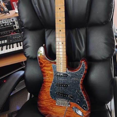 Fender American Professional II stratocaster with EMG SL20 Steve Lukather signature pickups. Stunning strat that both plays and sounds like a dream. Comes with certificate of authenticity from Fender and a great moulded hard case. SEK 13,500