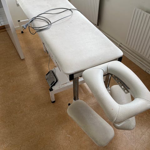 En hopfällbar massagebänk / behandlingsbänk i mycket bra skick. Den är endast använd vid ett fåtal tillfällen i samband med utbildning. Du bär enkelt med dig bänken genom ett stabilt handtag.