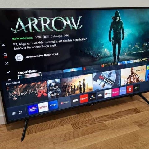 Samsung 43 tum 4K UHD Smart TV med Crystal Processor 4K, LED-bakgrundsbelysning, HDR10-stöd och 60 Hz uppdateringsfrekvens. Utrustad med 3 HDMI- och 2 USB-portar. Smart TV med Tizen OS, inbyggd Wi-Fi och Bluetooth. Passar för streaming med appar som Netflix och HBO.