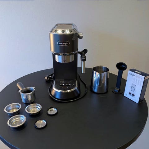 Följer med portafilter och dubbelshot filterkorg. Går bra att fraktas.