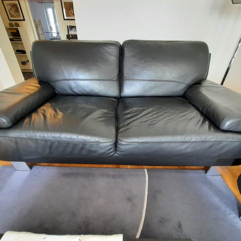 Skinn Grupp Tresits soffa, två fåtöljer med en fotpall.