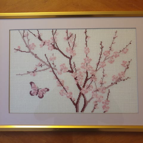 Ett handbroderad tavla med motiv av Stenhammars slott. Den har en brun ram med reflexfritt glas. Storlek 50x36 cm.