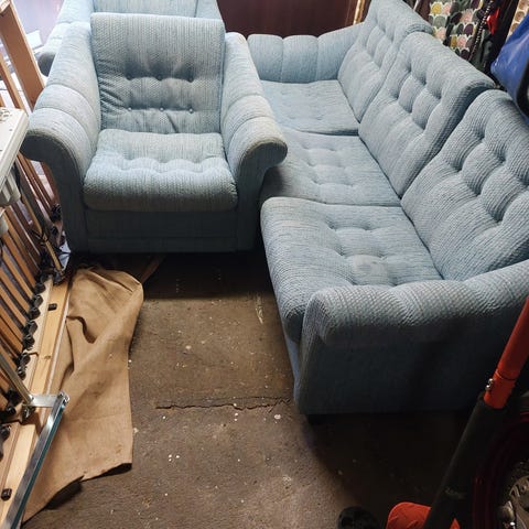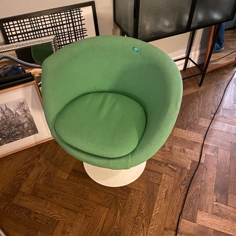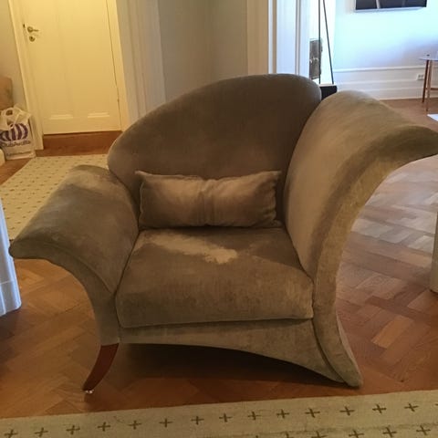 En Dansk fåtölj men fattas en fot pall som fanns till den.
