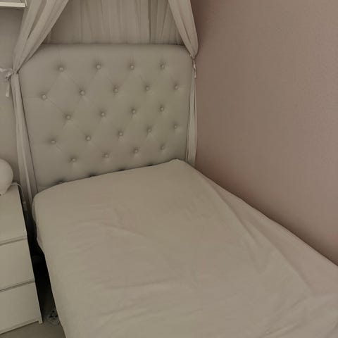 Komplett säng med gavel skinn Ljusbeige 115/200cm .Mycket bra skick.