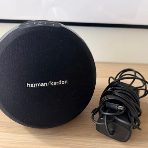 Harman Kardon högtalare i vit färg med rundad design. Produkten är en ljudenhet avsedd för ljuduppspelning.